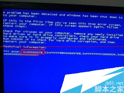 1、设置完bios后重启电脑,刚进入windows读条状态,即弹出错误代码为0x000007B的蓝屏故障,如下图所示: