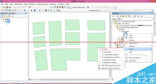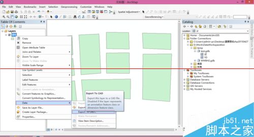 1、展开ArcCatalog连接的文件,选择需要转化的数据。单击右键在弹出的右键菜单中选择导出(Export)——导出到CAD(To CAD);
