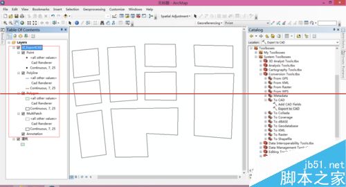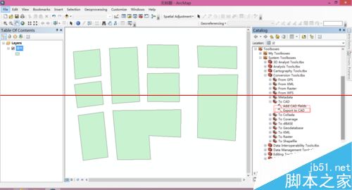 5、还可以使用ToolBoxes工具箱中的转化工具(ConverSion Tools)——转化为CAD(To CAD)——导出到CAD(Export to CAD)直接打开转化对话框。