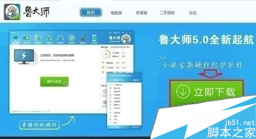 到鲁大师的官网,下载最新版本的硬件检测软件。