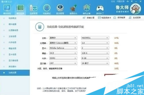 查看自己电脑的电源功率有两大好处,第一知道给台式电脑配置多大的电源,第二可以精确的算出,一台电脑,一天一般消耗多少电,那么小编教大家来查看一下自己电脑的功率是多少。我们可以要借助鲁大师这个软件,很直观的就能查看出电脑的功耗。