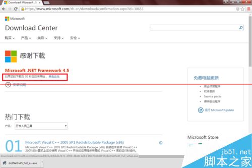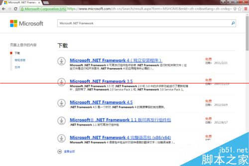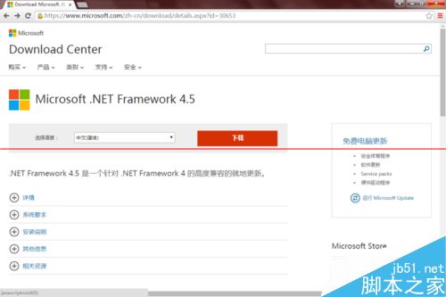 3、选择最新的Microsoft .NET Framework 4.5,单击,跳转到下载页面