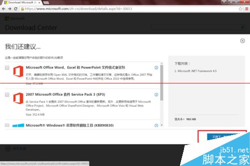 4、选择额外的软件或者加载项,或者直接单击不用了,谢谢,请继续按钮,即可开始下载