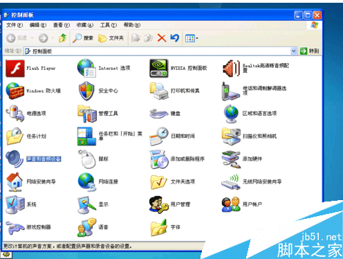 1:打开控制面板,然后点击声音和音频设备 如图: