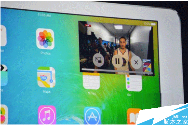 另外,iPad还支持“画中画”功能,可以将正在播放的视频缩放到一角,然后利用屏幕其它空间处理其他的工作。类似于SAMSUNG此前推出的视频多屏播放功能。