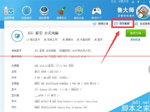 5、如果想把你的电脑硬件信息分享给你的好友,我们可以点击右侧的保存截图。