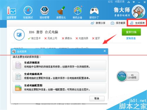 1、小编要告诉你们,通过图下的鲁大师PC版软件来进行查看电脑硬件信息和性能测试并保存,大家可以从360、百度等软件管理上来下载安装到电脑使用,双击打开鲁大师。