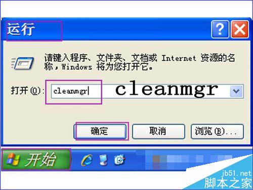 1、首先我们打开开始--运行,输入命令 cleanmgr 确定