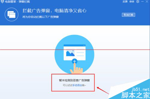 4、【弹窗拦截】界面,手动添加即可。如下图所示: