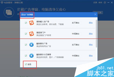 5、弹出【添加广告弹窗】全选打勾并添加即可。如下图所示: