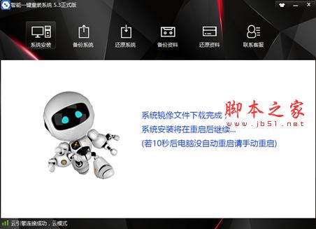 进入下载页面后,就无需在管了,程序下载完毕后,会在10秒后重启,重启过程中会安装系统