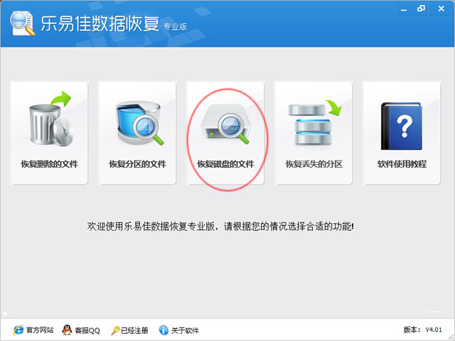 1、运行《乐易佳数据恢复-专业版》。
