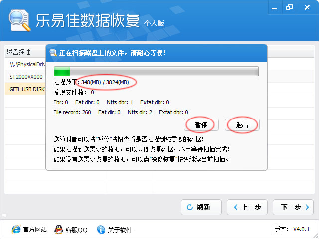 您随时可以点击“退出”按钮终止当前的扫描。