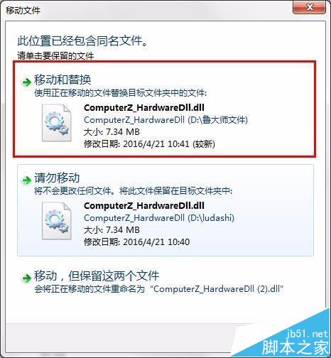 5、将ComputerZ_HardwareDll.dll 这个文件复制到鲁大师安装发的根目录下面,注意选择“移动和替换这个选项”