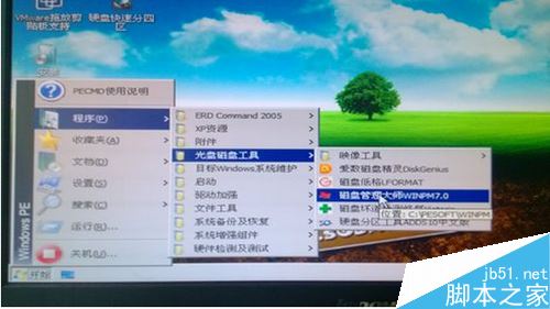 1分钟左右的时间,WINPE桌面已经显示,点击开始菜单,程序,光盘磁盘工具,选择磁盘管理大师WINPM7.0