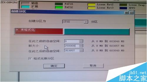 打开WINPM7.0以后,右侧显示的长条矩形代表整个磁盘,下方列表中显示磁盘容量。在列表记录中点击鼠标右键,选择【创建】-【主分区】,在下方新大小位置输入划分磁盘容量数值,单位为MB.比如要划分主分区为100G,就输入数值100000,以此类推依次划分好逻辑分区。过程中会弹出格式化窗口,选择是,类型选择NTFS格式