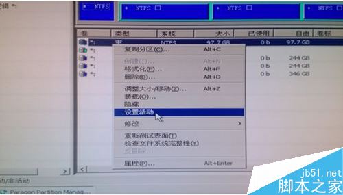 当划分好所有规划的磁盘后,在主分区(一般为C盘)上点击鼠标右键,在菜单中选择【设置活动】命令
