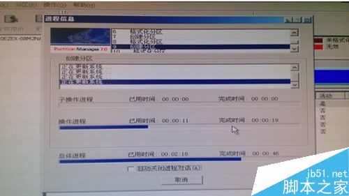确认后,WINPM开始执行以上操作。在执行过程中,软件会显示已用时间和所需要的完成时间,这要根据操作步骤多少和机器的性能决定。执行完成后,点击右上角的关闭按钮关闭窗口