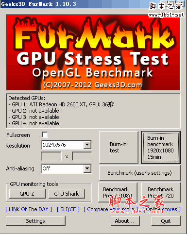 FurMark只是用来测试显示卡的OpenGL效能,它可以让显示卡跑出任何游戏都达不到的高温,以致于只要通过了FurMark考验过的显示卡,跑游戏都不会出问题。