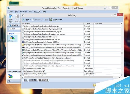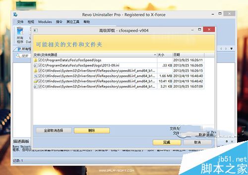 由于保存了软件安装的所有监控记录,当不再需要 cFosSpeed 这个软件之后,在 Revo Uninstaller Pro 里即可完成「彻底的卸载」,它既会删除文件,也会清除注册表项,基本可以做到不残留任何垃圾文件。