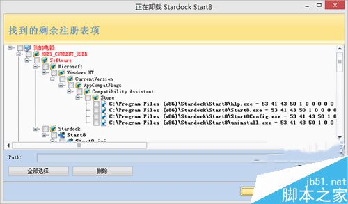 看吧,虽然 Start 8 是卸载了,但还留下了不少的注册表项和垃圾文件(这里并不是针对 Start 8,事实上99%的软件卸载后都会残留有不少垃圾),Revo Uninstaller Pro 高级卸载的扫描算法可以轻松找到相关的内容,然后可以全部帮你删除干净!