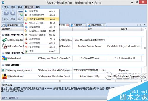 此外,如上图可见,Revo Uninstaller Pro 还自带了一系列非常实用的工具,譬如 「自动启动管理员」、「垃圾文件清理器」、「浏览器清理器」、「Office清理器」「永久删除」等等,真心非常实用,基本上有了它,你已经不再需要什么优化工具了。从字面上就能清楚这些工具的作用,这里就不多做介绍了。