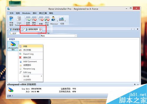 之后,在「追踪的程序」页面便可以看到利用 Revo 监视安装功能安装好的软件了。你可以右键点击选择卸载、Export Log 导出监视记录或者 Edit Log 查看和修改监视记录。