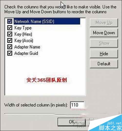 在“View”菜单中选择“Choose Columns”,在弹出的窗口中定制显示方式,例如仅仅显示无线网络名称和无线密码,如图2所示,只要选择“Network Name(SSID)”和“ Key(Ascii)”这两个选项即可。