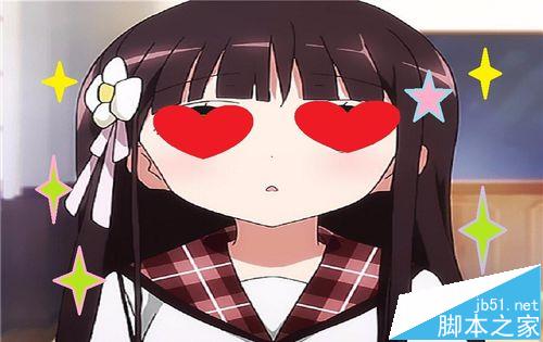 4、用鼠标在女孩的两只眼睛上分别画上心形,如图所示,画笔颜色选为红色。