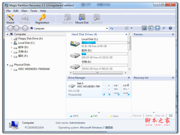 以上就是脚本之家小编为大家讲解的如何使用Magic Partition Recovery软件进行恢复被删除的分区,想了解更多精彩教程请继续关注脚本之家网站!