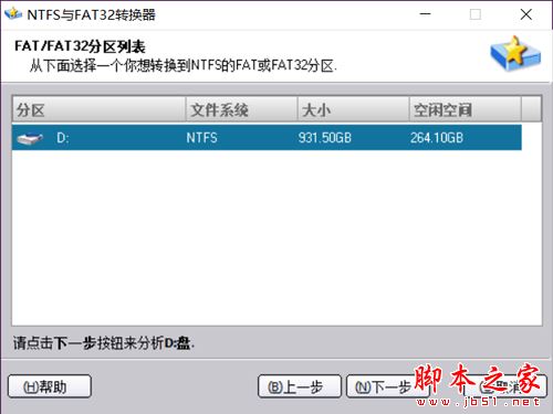 在下一个界面中,选择具体要执行格式转换的磁盘分区,此时如果文件很多,会有一个扫描过程。