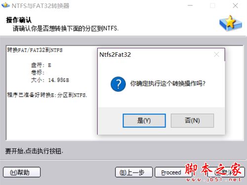 确认无误后,点击“Proceed”执行。这时候要特别留意,如果你选择了磁盘,这是最后一次“后悔”的机会,选择“是”进行转换。