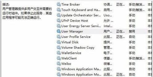 点击“打开服务”后,找到UserMananer,按右键,点击“属性”命令。