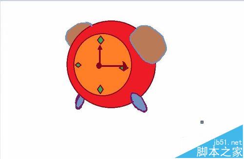 6、现在我们的闹钟已经有模有样了,接下来就是外部的装饰的绘制了,首先绘制两只支撑的”脚“。这里用铅笔进行绘制外边框,再用油漆桶填充即可。