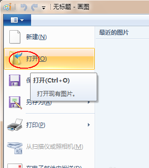2、点击“画图”工具左上角的倒三角-点击“打开”。