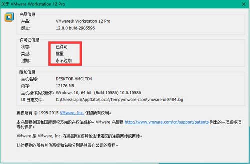 点击【帮助】-【关于VMware Workstation】,查看激活信息