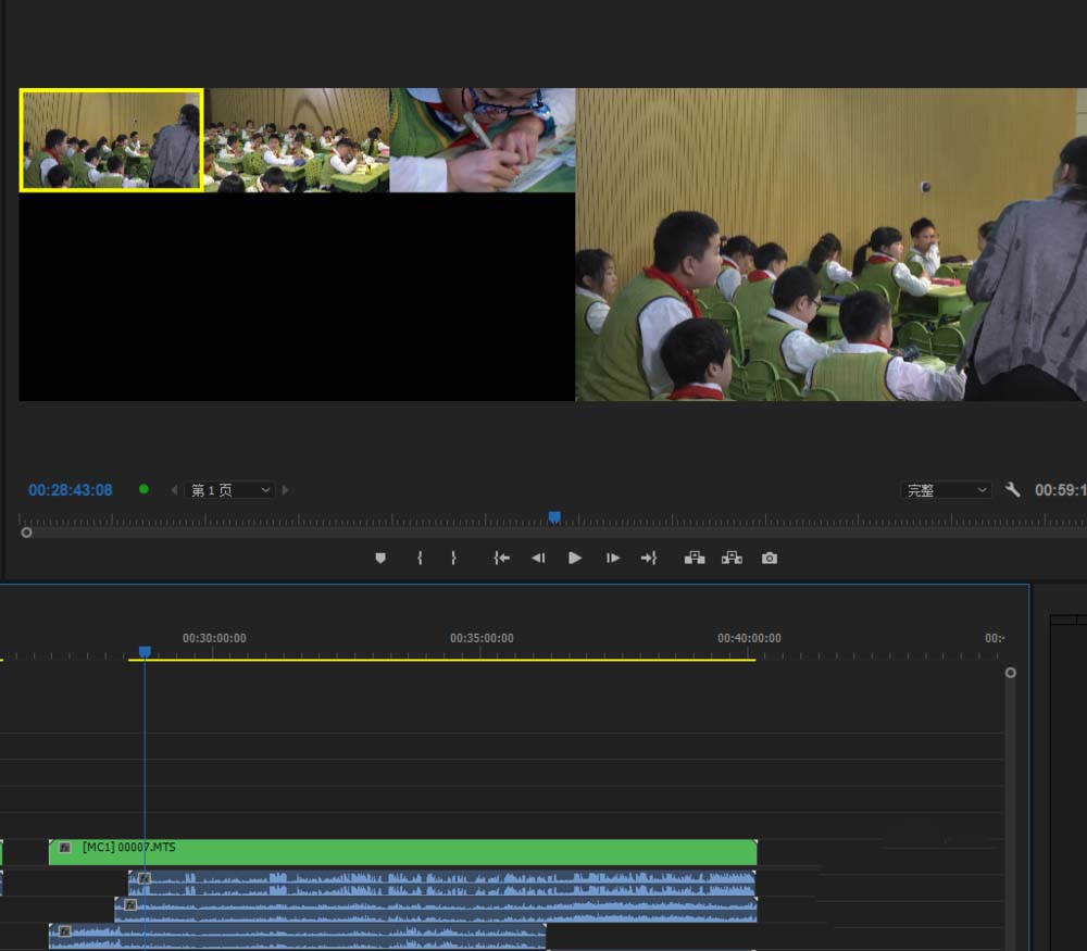 7、这样你就能在播放窗口看到多机位的素材,剪辑也很方便,用鼠标点击窗口就可以了,之后稍作修剪,希望能够帮到大家!