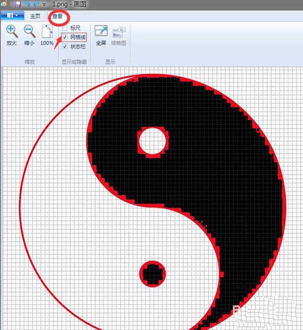 5、点击查看,勾选网状格,让图片在网状格中显示。
