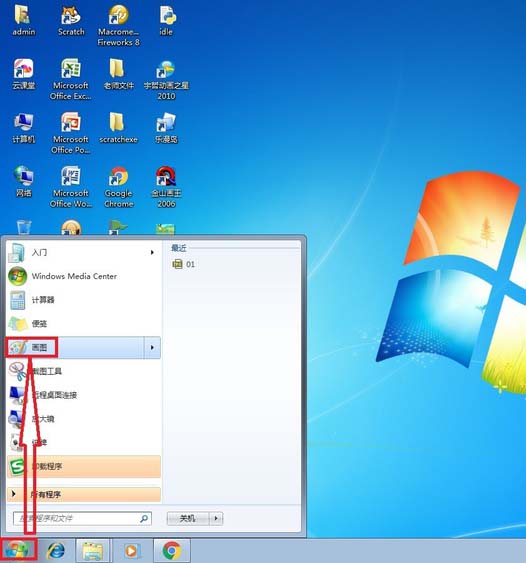 1、在开始菜单,找到附件,找到画图。