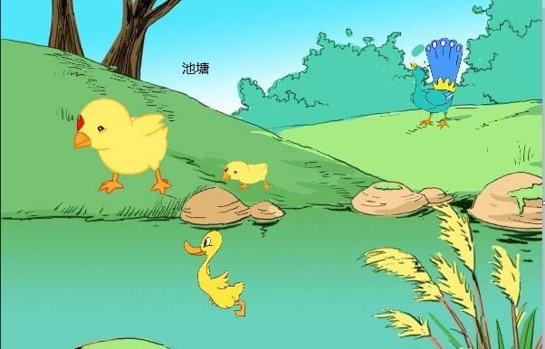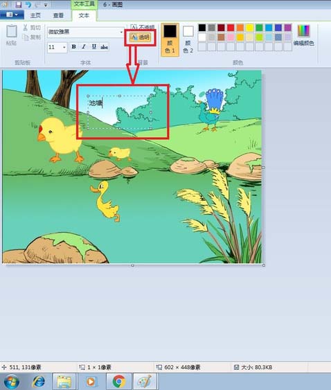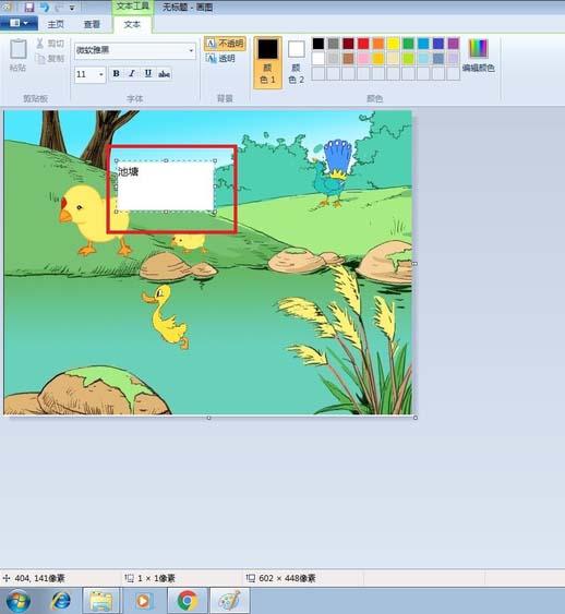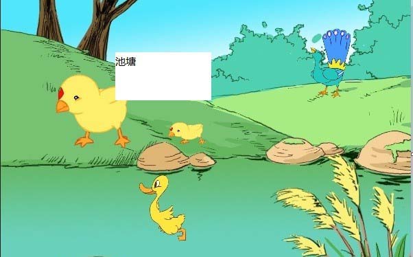 5、发现输入的文字池塘将下面的画遮住了,很不协调。