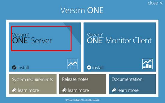 2、运行后得到如下的安装导航图,点击下图红框中的ONE Server开始安装Veeam ONE Server: