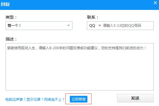 2、在跳出的界面正下方点击“立即修复”选项,随后就会进入驱动人生驱动诊所子界面。