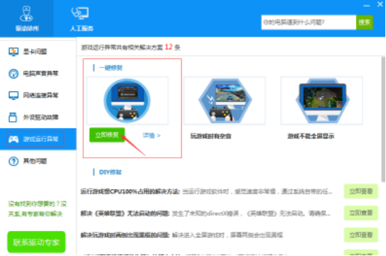 如何用驱动人生7自动修复游戏运行异常?用驱动人生7自动修复游戏运行异常的方法: