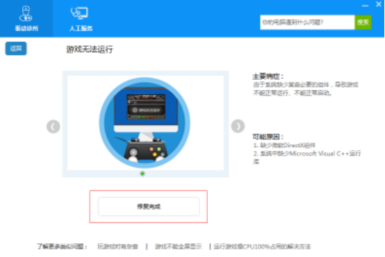 游戏运行出现错误怎么解决?玩游戏是现代人释放压力、缓解疲劳的一种常见方式,如果我们在游戏过程中遇到运行错误,看着屏幕前那一行行的错误指令反而会更心烦。驱动人生7中拥有自动修复游戏运行的功能,操作简单便捷,下面小编就为大家介绍下如何用驱动人生7自动修复游戏运行异常的方法教程。