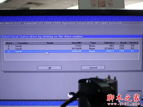 我们需要选择源数据硬盘,即原配320GB硬盘(Drive3,Size容量305245MB),并点击“OK”确认,原配320GB硬盘的字体变成灰色,表示成功作为源数据硬盘。