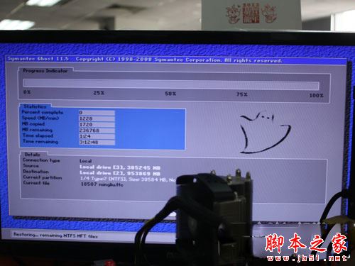 随后Ghost会有大概10分钟左右的自检过程,检查硬盘完毕,进入真正的对拷数据过程,我们对拷200多GB的数据,需要至少3小时12分钟(具体消耗时间和CPU/硬盘速度有关)。