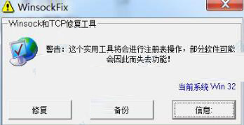 可以使用本站的WinSockFix=来修复,操作按软件提示,这个工具主要解决下面这三种问题: