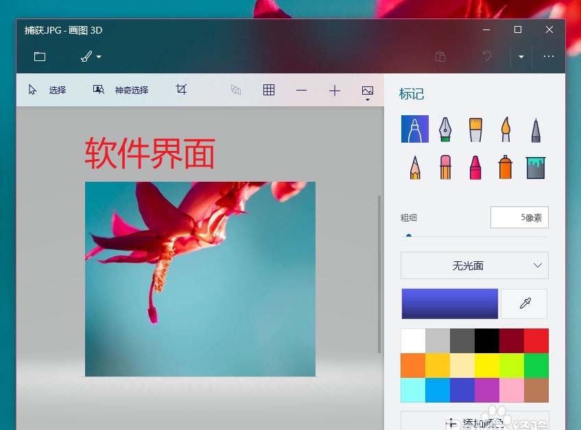 4、等待画图3D工具启动后,进入画图3D界面,截取的图片展现在3D画图工具中。