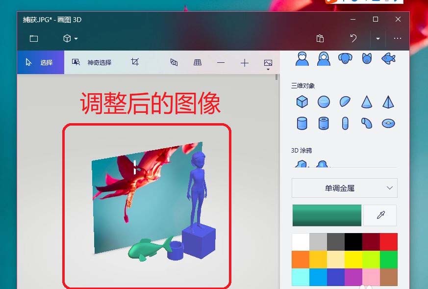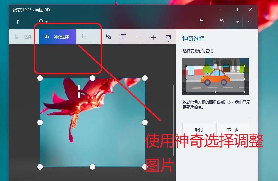 9、我们选择画图工具神奇选择,对图片进行大小调整。