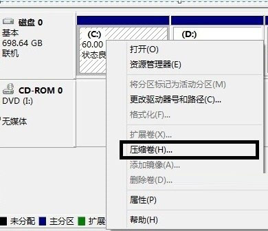 Ps.一般选择系统C盘选择“压缩卷”。